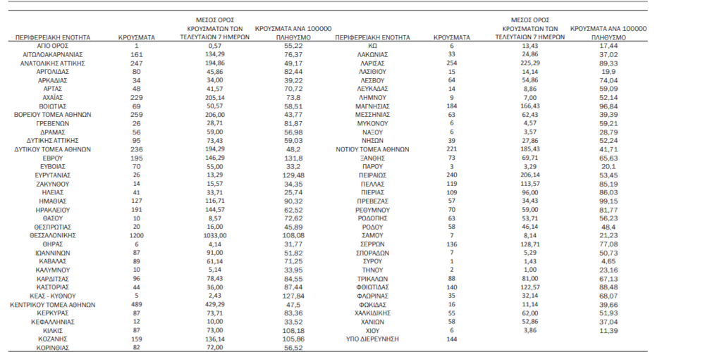 Αναλυτικότερα τα κρούσματα στις περιφερειακές ενότητες που ανήκουν στην Αττική:
