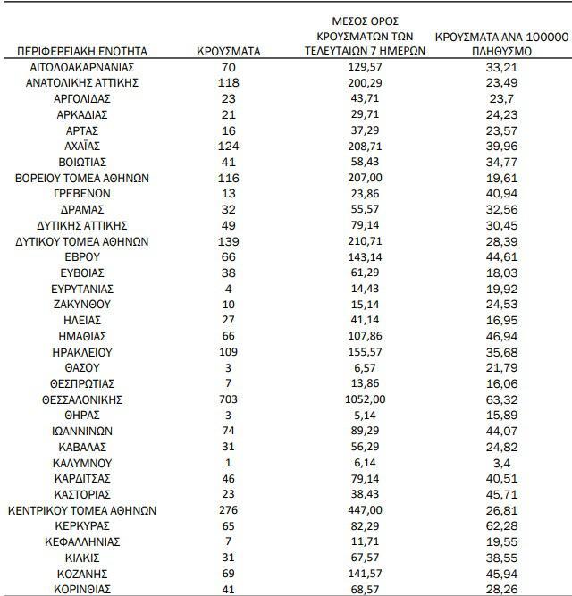 Αναλυτικότερα τα κρούσματα στις περιφερειακές ενότητες που ανήκουν στην Αττική: