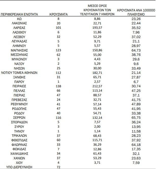 Αναλυτικά, η γεωγραφική κατανομή των σημερινών κρουσμάτων: