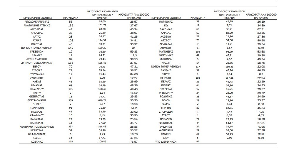 Αναλυτικά, η γεωγραφική κατανομή των σημερινών κρουσμάτων: