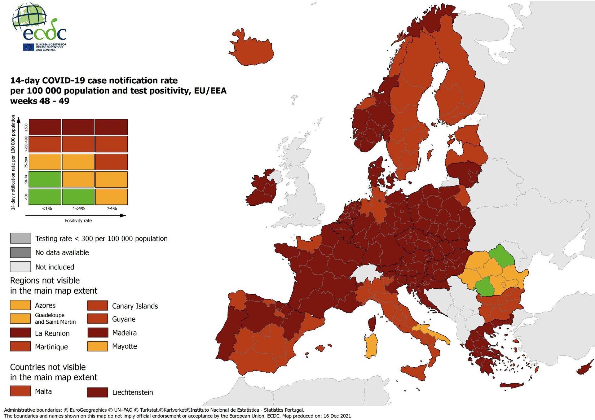 Σημειώνεται ότι οι χάρτες του ECDC βασίζονται σε δεδομένα που δηλώνονται από τα κράτη-μέλη της Ε.Ε. στο Ευρωπαϊκό Σύστημα Επιτήρησης (TESSy).