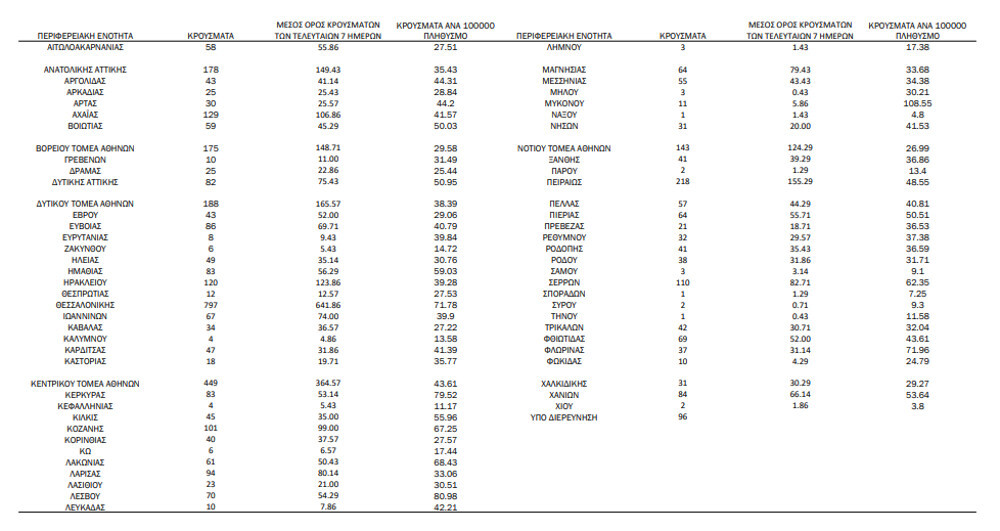 Αναλυτικότερα τα κρούσματα στις περιφερειακές ενότητες που ανήκουν στην Αττική: