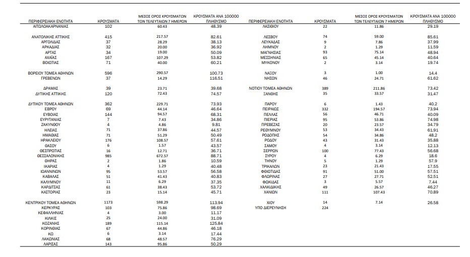 Αναλυτικότερα τα κρούσματα στις περιφερειακές ενότητες που ανήκουν στην Αττική: