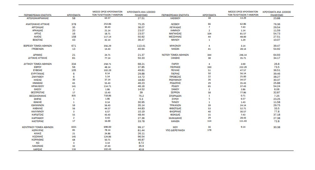Αναλυτικότερα τα κρούσματα στις περιφερειακές ενότητες που ανήκουν στην Αττική: