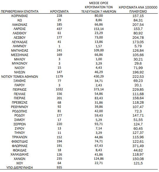 Αναλυτικότερα τα κρούσματα στις περιφερειακές ενότητες που ανήκουν στην Αττική: