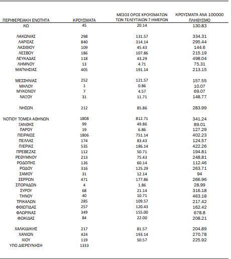Αναλυτικότερα τα κρούσματα στις περιφερειακές ενότητες που ανήκουν στην Αττική: