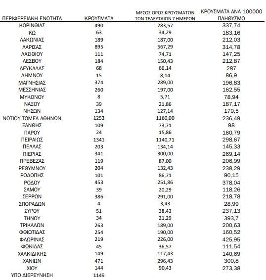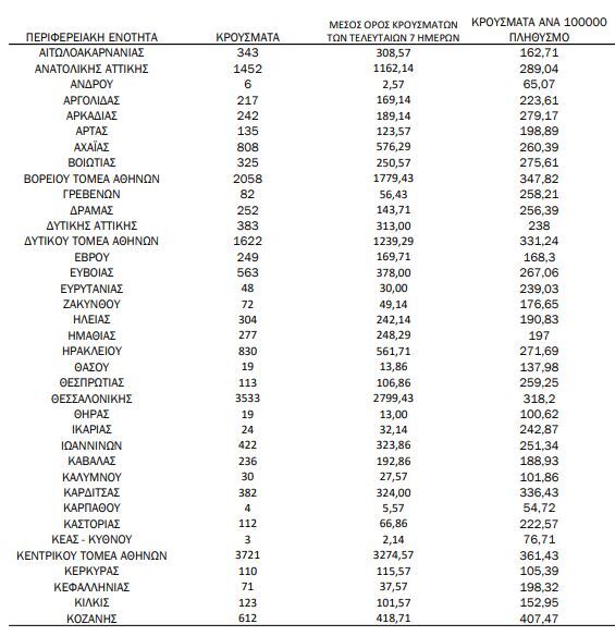 Αναλυτικά, η γεωγραφική κατανομή των σημερινών κρουσμάτων: