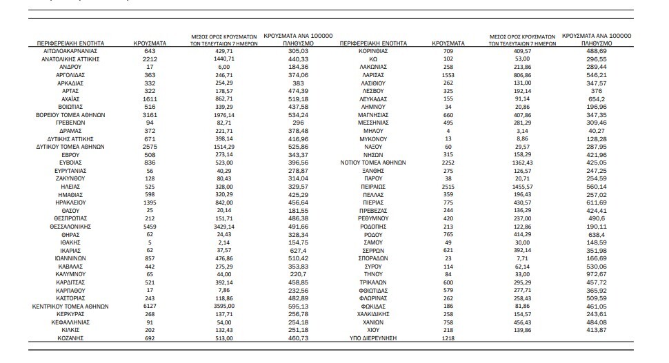 Αναλυτικότερα τα κρούσματα στις περιφερειακές ενότητες που ανήκουν στην Αττική: