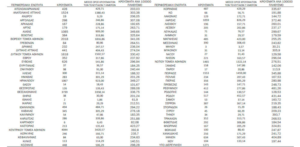 Αναλυτικότερα τα κρούσματα στις περιφερειακές ενότητες που ανήκουν στην Αττική: