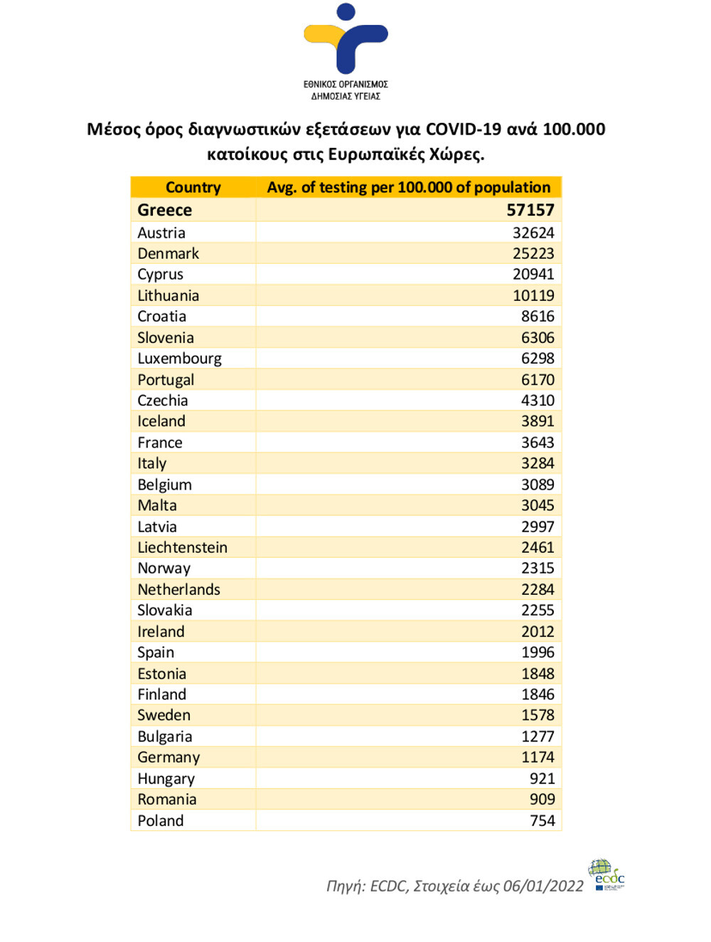 * Από 1/5/2020 – 30/12/2021, ο ΕΟΔΥ πραγματοποίησε εντελώς δωρεάν 8.759.556 διαγνωστικά τεστ (7.642.167 rapid και 1.112.389 PCR). Σε αυτά δεν συμπεριλαμβάνονται τα εκατομμύρια διαγνωστικά τεστ που έχουν γίνει σε δομές του ΕΣΥ.