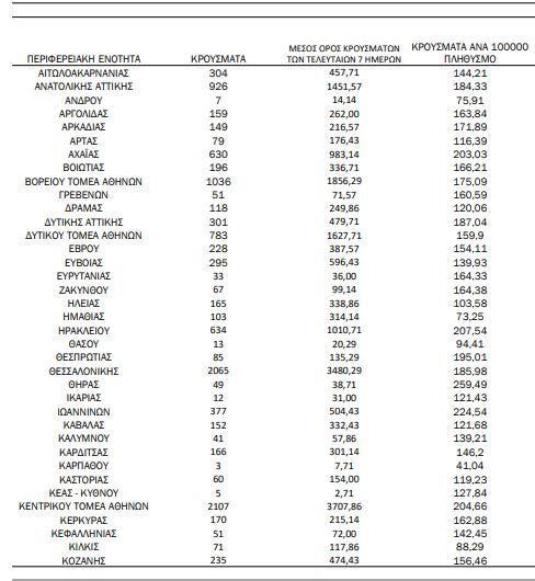 Αναλυτικότερα τα κρούσματα στις περιφερειακές ενότητες που ανήκουν στην Αττική: