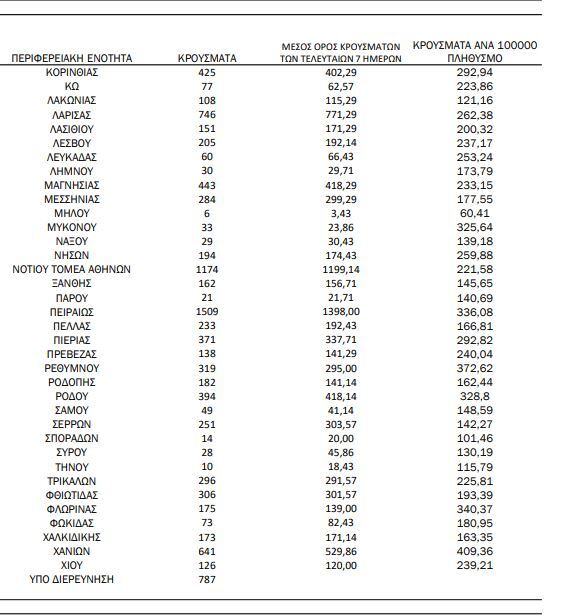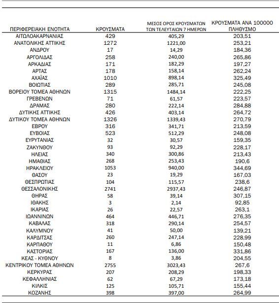 Αναλυτικά, η γεωγραφική κατανομή των σημερινών κρουσμάτων: