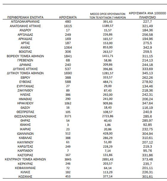 Αναλυτικότερα τα κρούσματα στις περιφερειακές ενότητες που ανήκουν στην Αττική: