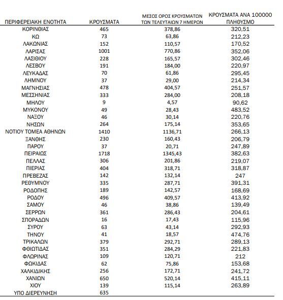 Αναλυτικά, η γεωγραφική κατανομή των σημερινών κρουσμάτων: