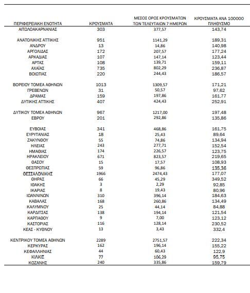 Αναλυτικότερα τα κρούσματα στις περιφερειακές ενότητες που ανήκουν στην Αττική: