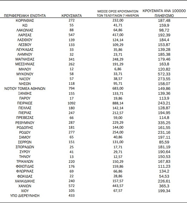 Αναλυτικά, η γεωγραφική κατανομή των σημερινών κρουσμάτων: