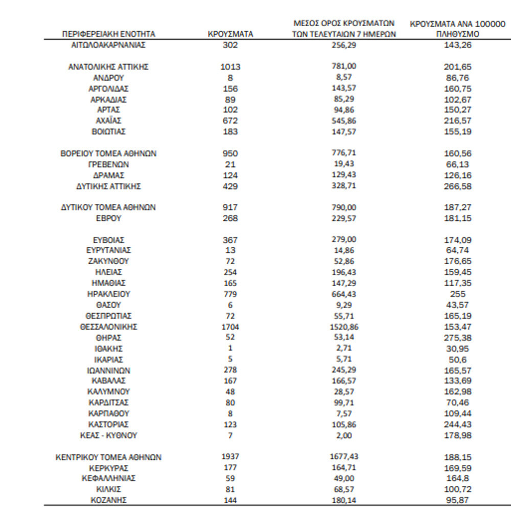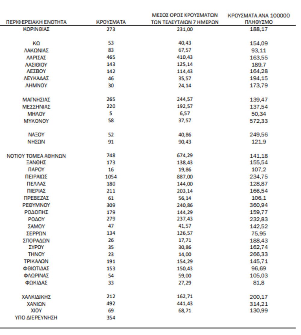Αναλυτικότερα τα κρούσματα στις περιφερειακές ενότητες που ανήκουν στην Αττική: