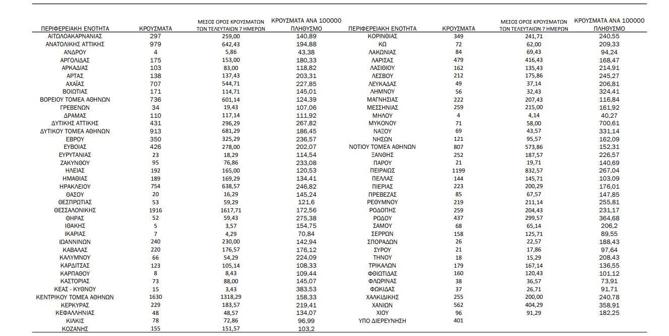 Αναλυτικότερα τα κρούσματα στις περιφερειακές ενότητες που ανήκουν στην Αττική: