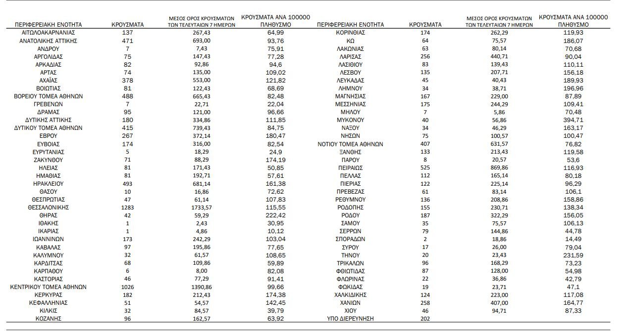 Αναλυτικά, η γεωγραφική κατανομή των σημερινών κρουσμάτων: