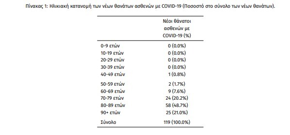 Συγκεκριμένα όσον αφορά τους νέους θανάτους, οι 107 καταγράφονται σε άτομα ηλικίας από 70 ετών μέχρι άνω των 90.