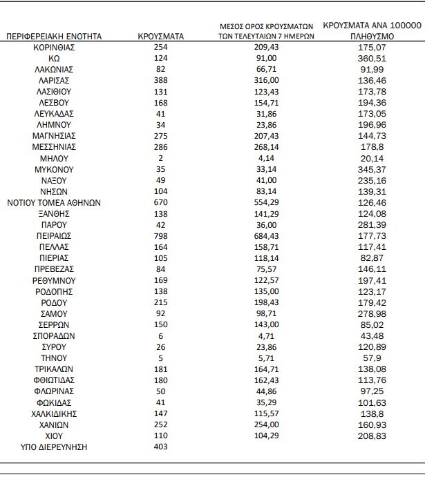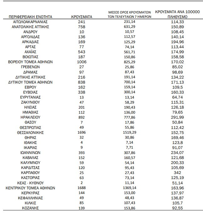 Αναλυτικότερα τα κρούσματα στις περιφερειακές ενότητες που ανήκουν στην Αττική: