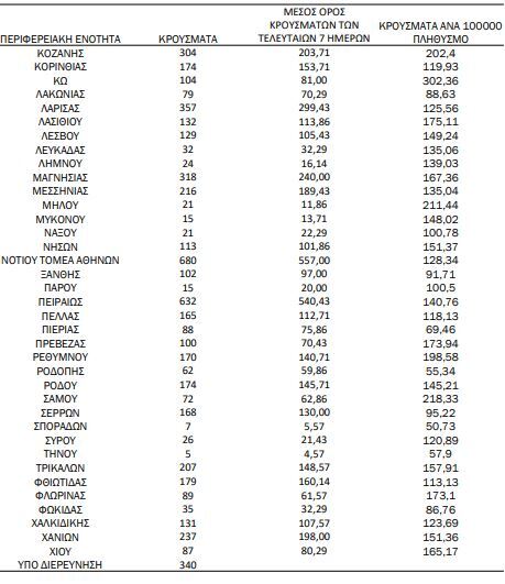 Αναλυτικά, η γεωγραφική κατανομή των σημερινών κρουσμάτων: