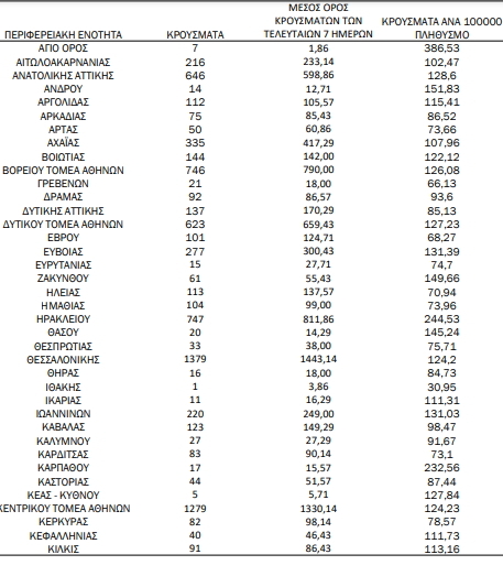 Αναλυτικότερα τα κρούσματα στις περιφερειακές ενότητες που ανήκουν στην Αττική: