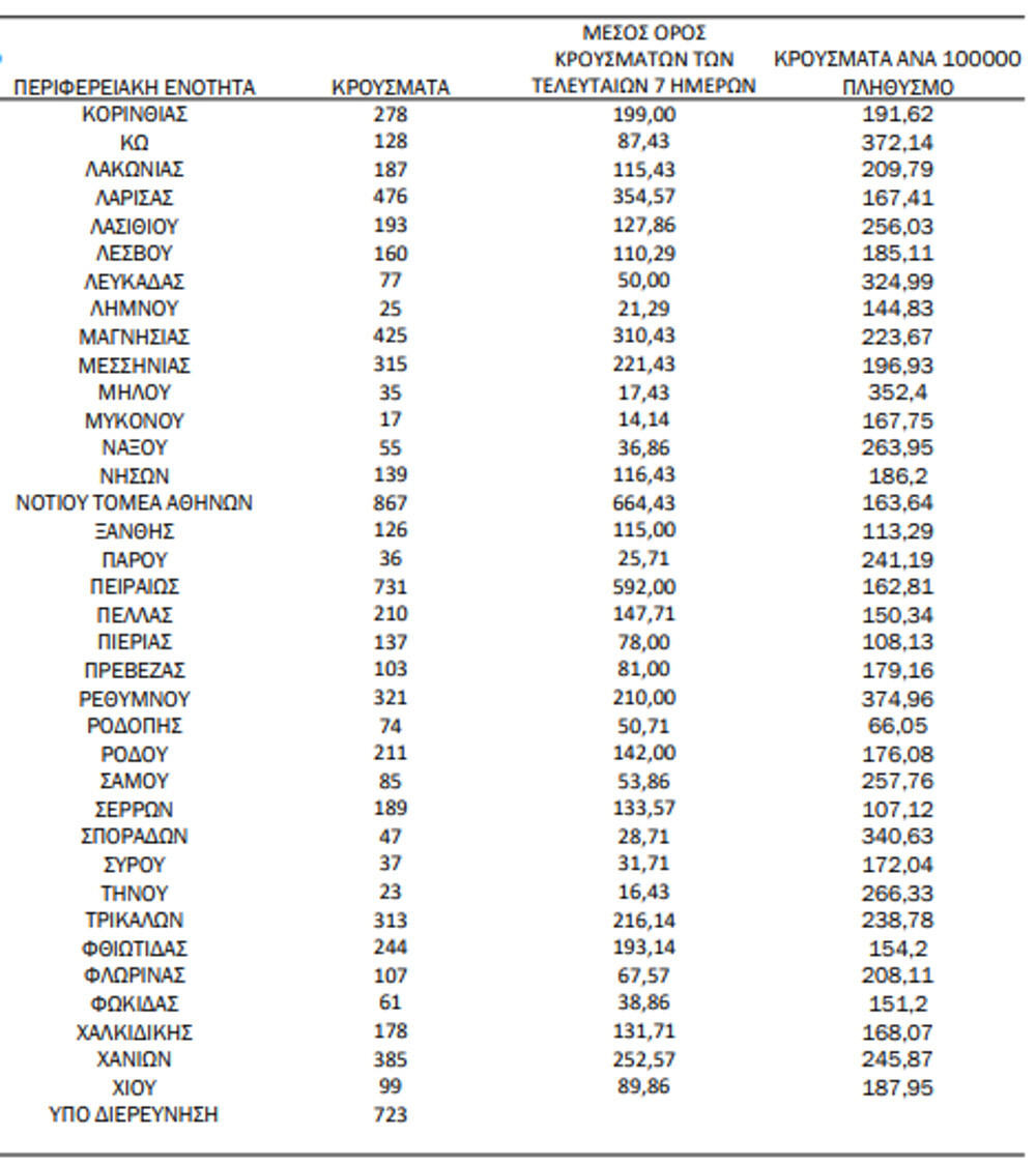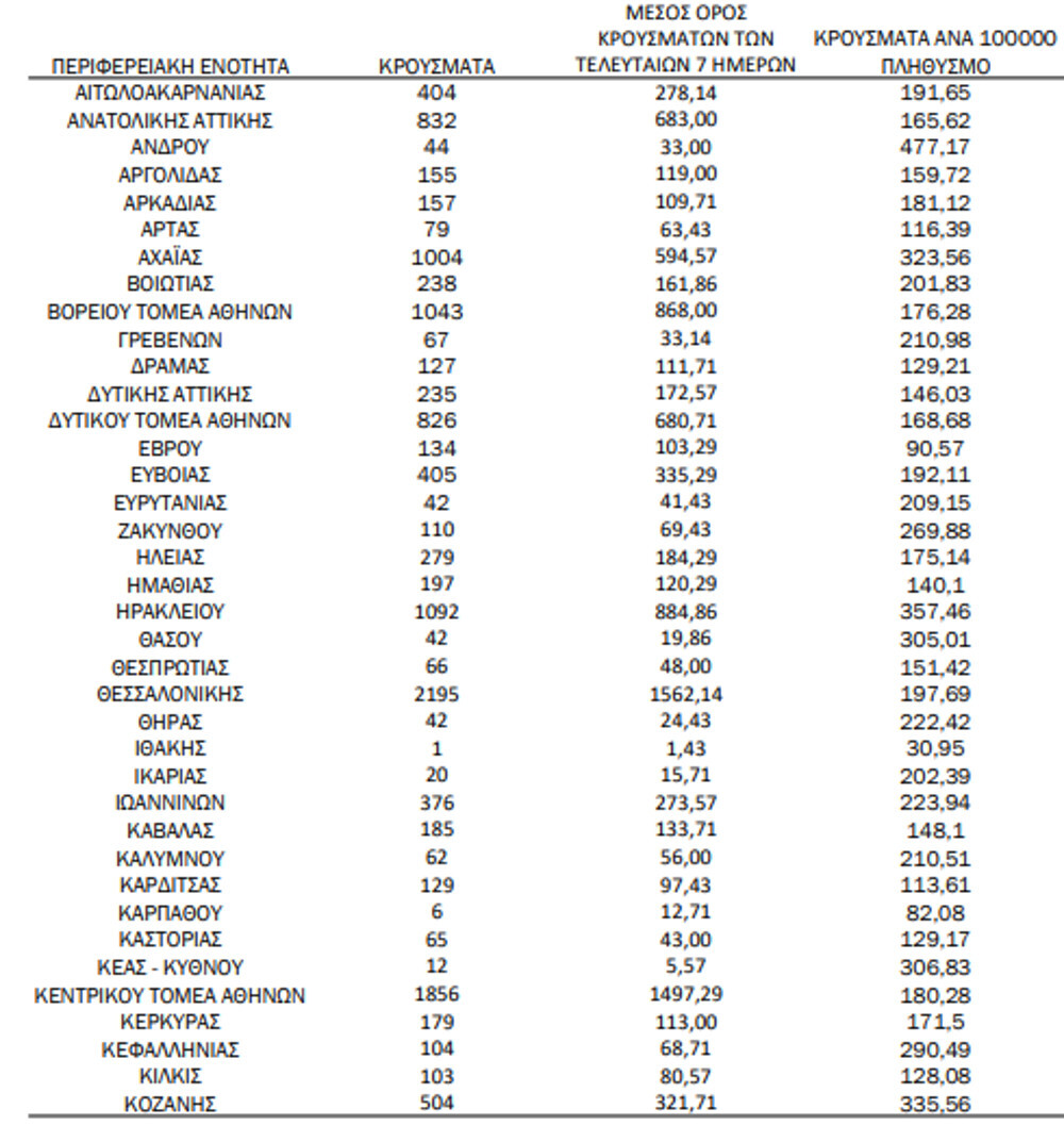 Αναλυτικά, η γεωγραφική κατανομή των σημερινών κρουσμάτων: