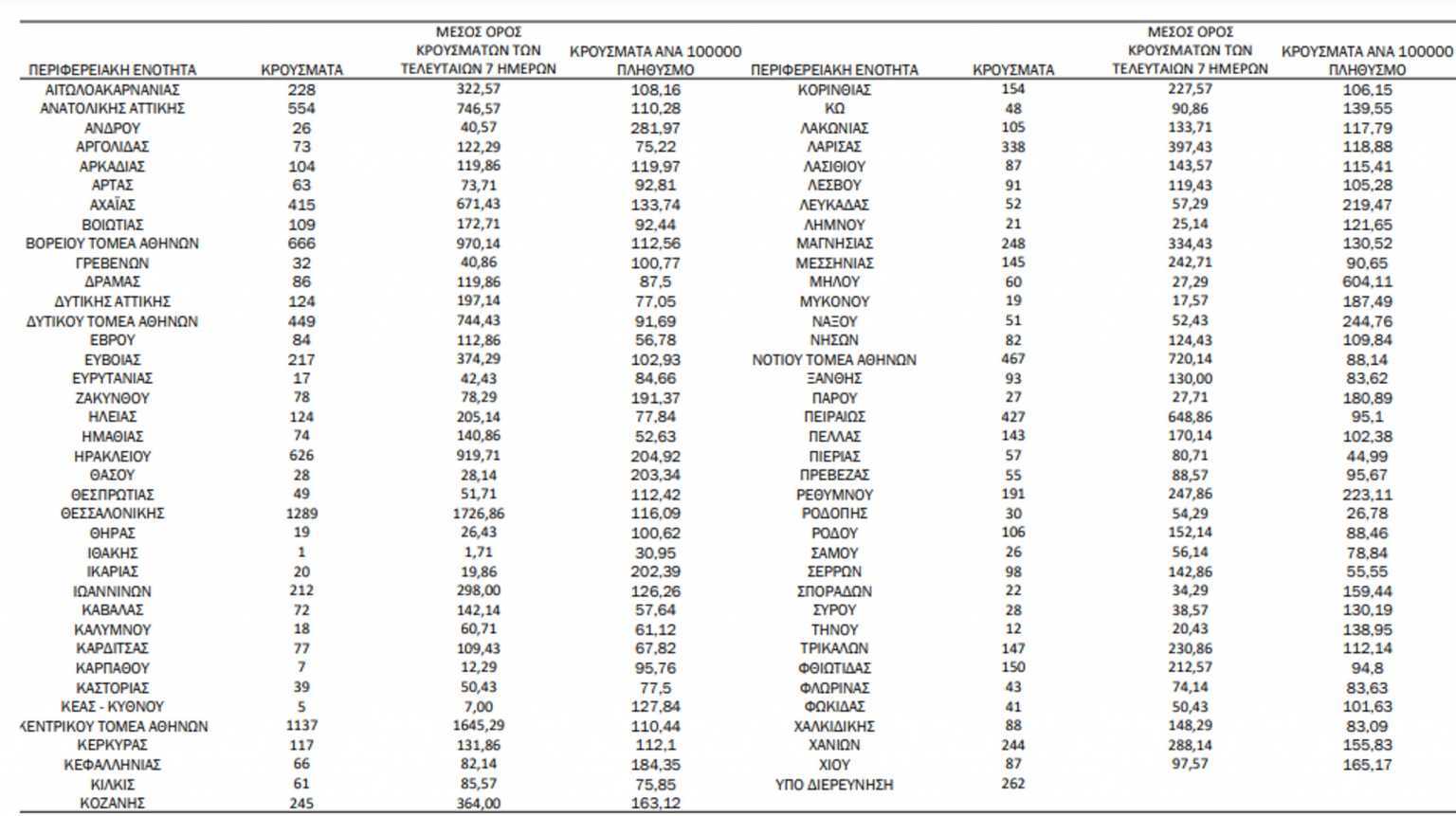 Αναλυτικότερα τα κρούσματα στις περιφερειακές ενότητες που ανήκουν στην Αττική: