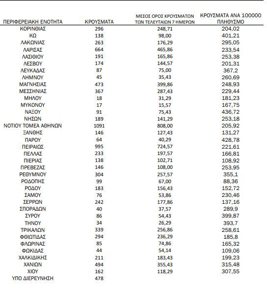 Αναλυτικά, η γεωγραφική κατανομή των σημερινών κρουσμάτων: