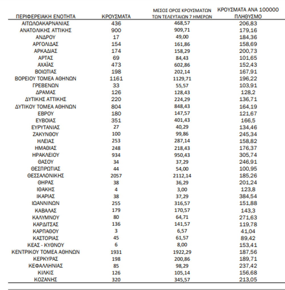 Αναλυτικότερα τα κρούσματα στις περιφερειακές ενότητες που ανήκουν στην Αττική: