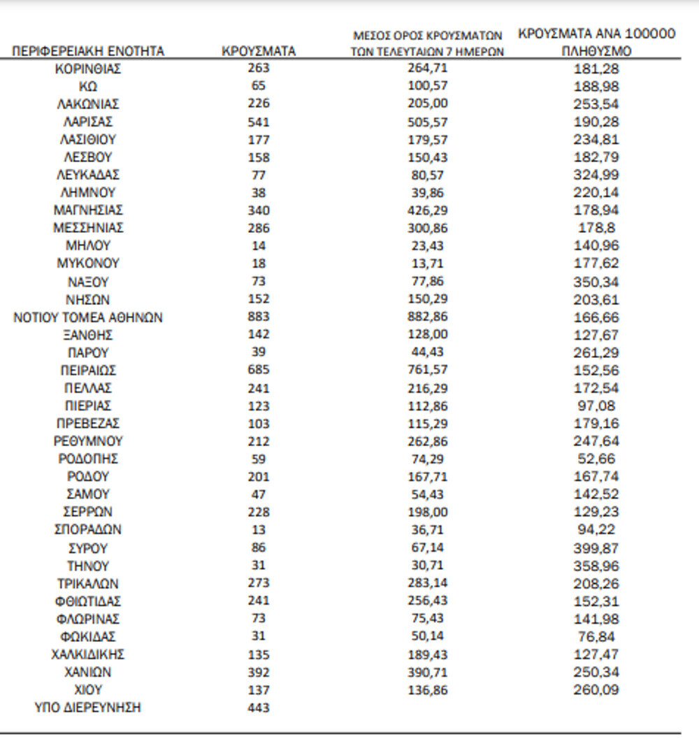 Αναλυτικά, η γεωγραφική κατανομή των σημερινών κρουσμάτων: