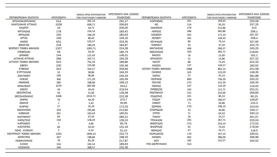 Αναλυτικότερα τα κρούσματα στις περιφερειακές ενότητες που ανήκουν στην Αττική:
