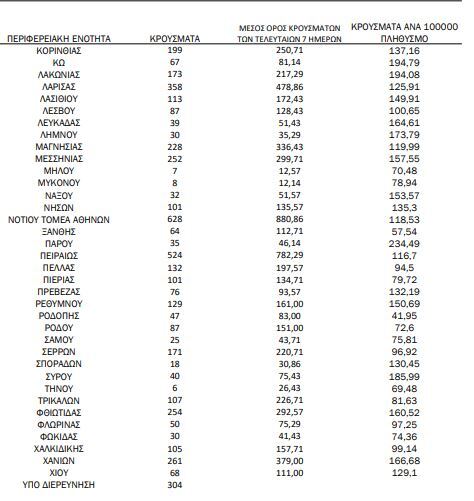 Τα νέα εργαστηριακά επιβεβαιωμένα κρούσματα της νόσου που καταγράφηκαν τις τελευταίες 24 ώρες
