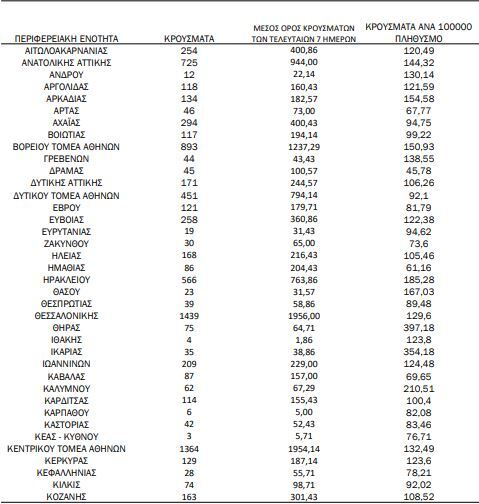 Αναλυτικότερα τα κρούσματα στις περιφερειακές ενότητες που ανήκουν στην Αττική: