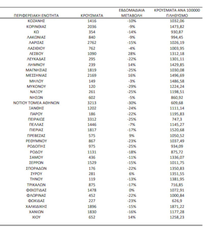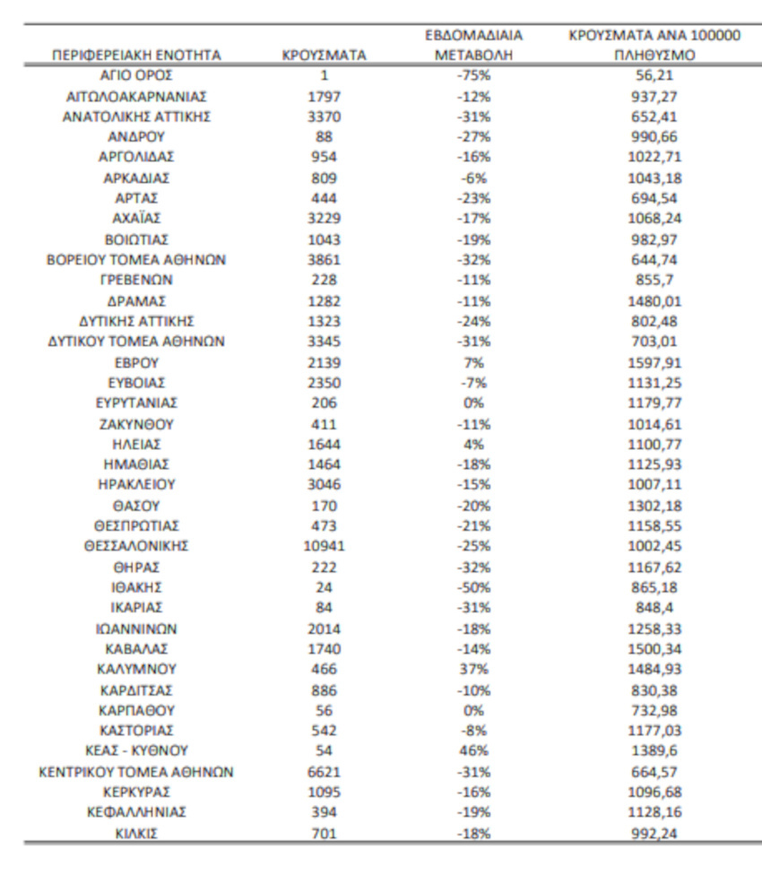 Αναλυτικότερα τα κρούσματα στις περιφερειακές ενότητες που ανήκουν στην Αττική:
