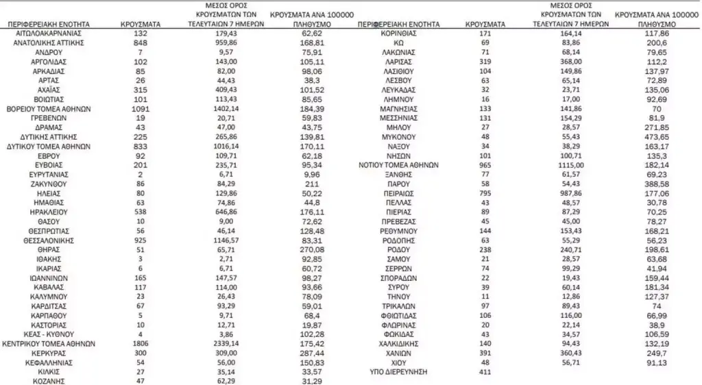 Αναλυτικότερα τα κρούσματα στις περιφερειακές ενότητες που ανήκουν στην Αττική: