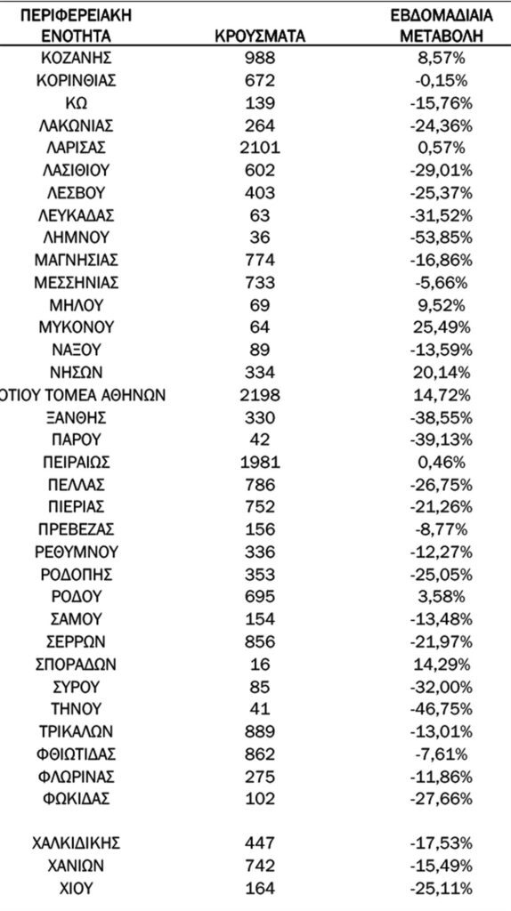 Δείγματα που έχουν ελεγχθεί: Την εβδομάδα αναφοράς, το ποσοστό θετικότητας ήταν 7,31% σε σύνολο 700.628 εργαστηριακών ελέγχων (RT-PCR/Rapid-Ag) με το μέσο όρο επταημέρου να είναι 100.090 δείγματα (1% εβδομαδιαία μεταβολή).
