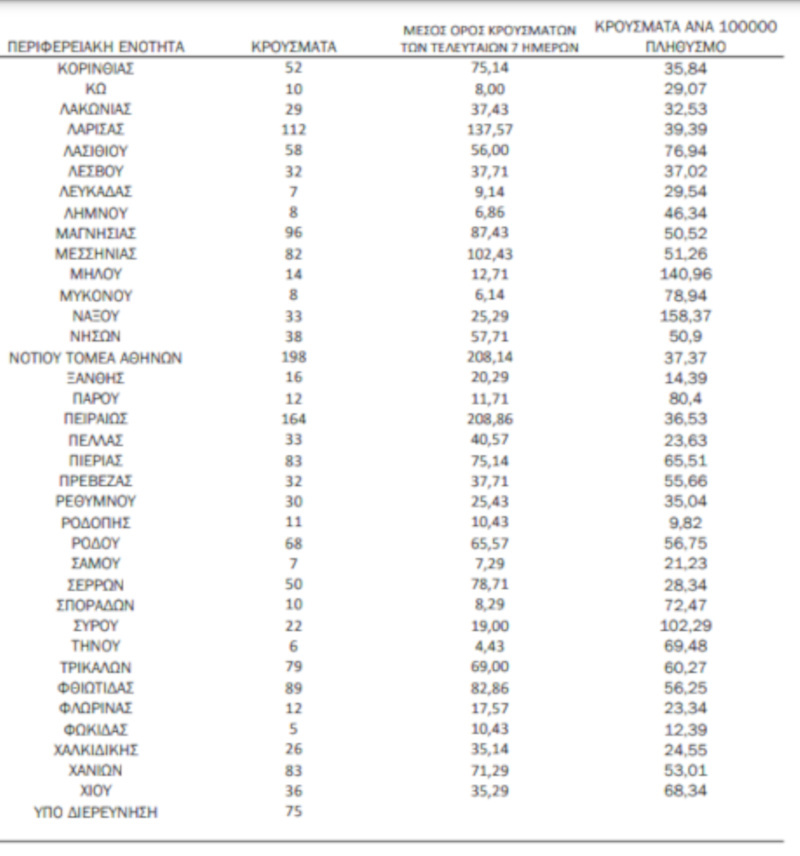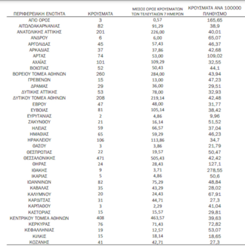 Αναλυτικότερα τα κρούσματα στις περιφερειακές ενότητες που ανήκουν στην Αττική: