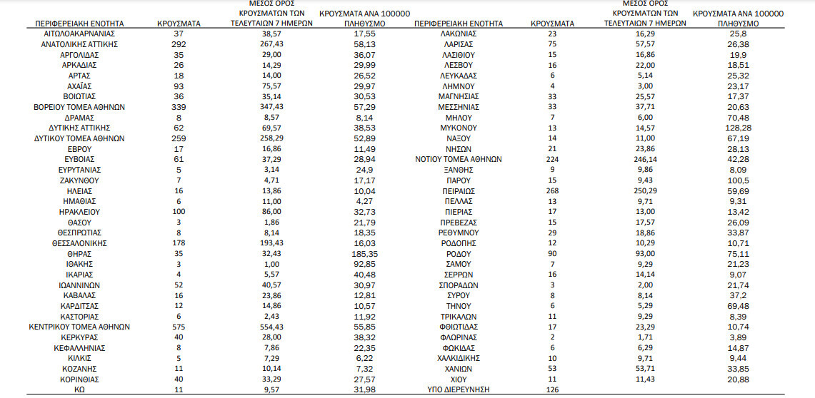 Αναλυτικότερα τα κρούσματα στις περιφερειακές ενότητες που ανήκουν στην Αττική: