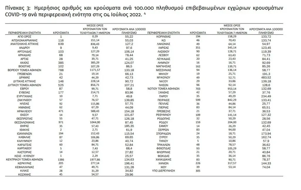 Αναλυτικά η ανακοίνωση του ΕΟΔΥ για τα κρούσματα