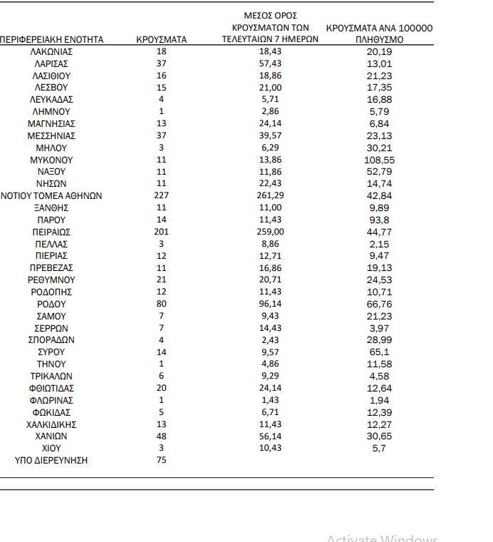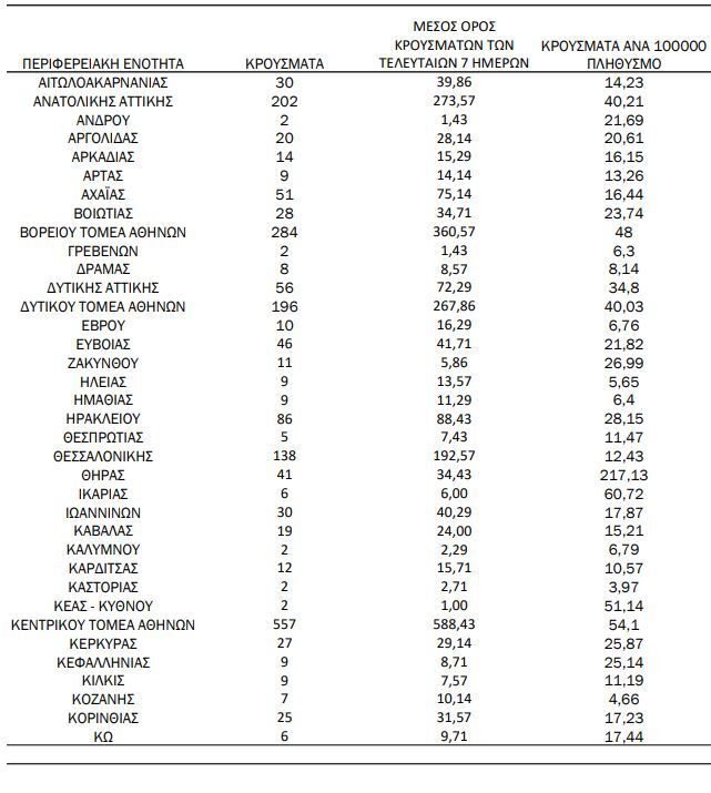 Αναλυτικότερα τα κρούσματα στις περιφερειακές ενότητες που ανήκουν στην Αττική: