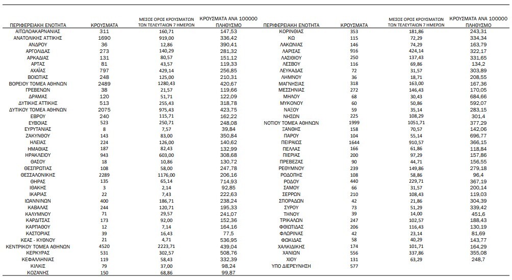 Αναλυτικότερα τα κρούσματα στις περιφερειακές ενότητες που ανήκουν στην Αττική: