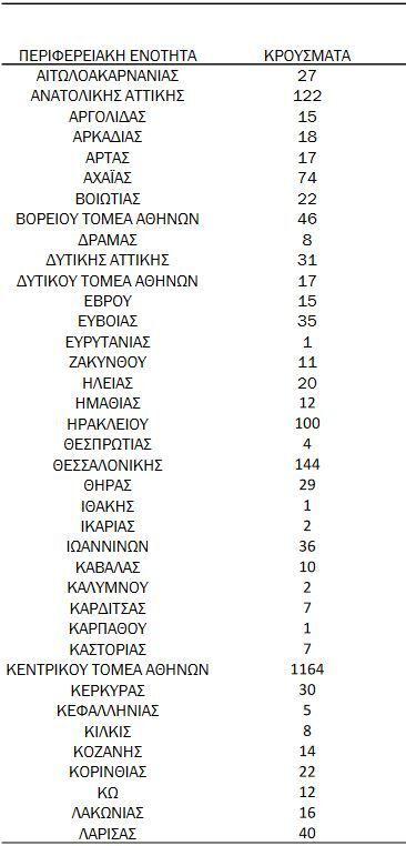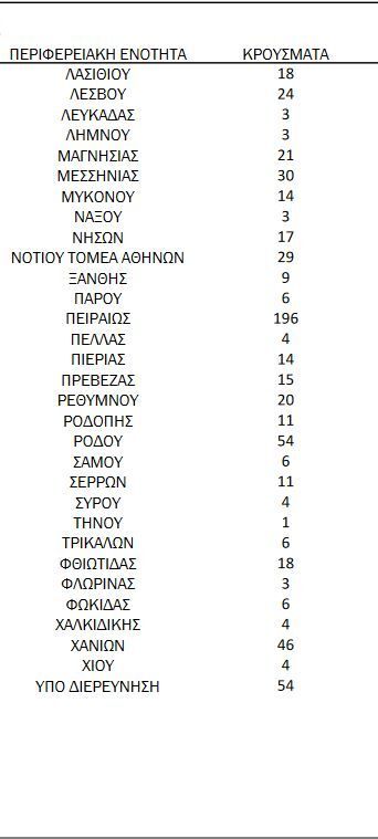 Αναλυτικότερα τα κρούσματα στις περιφερειακές ενότητες που ανήκουν στην Αττική: