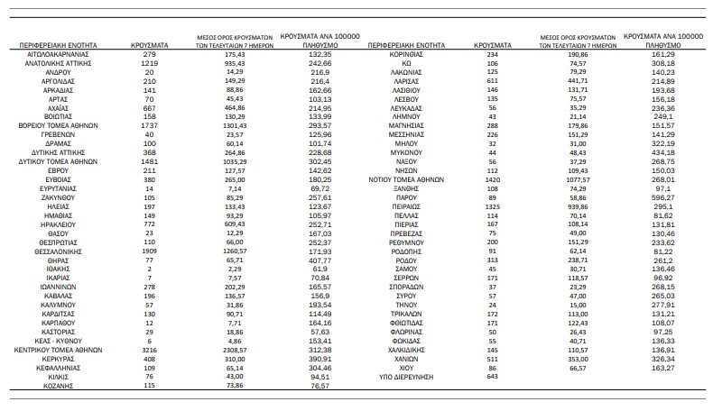 Αναλυτικότερα τα κρούσματα στις περιφερειακές ενότητες που ανήκουν στην Αττική: