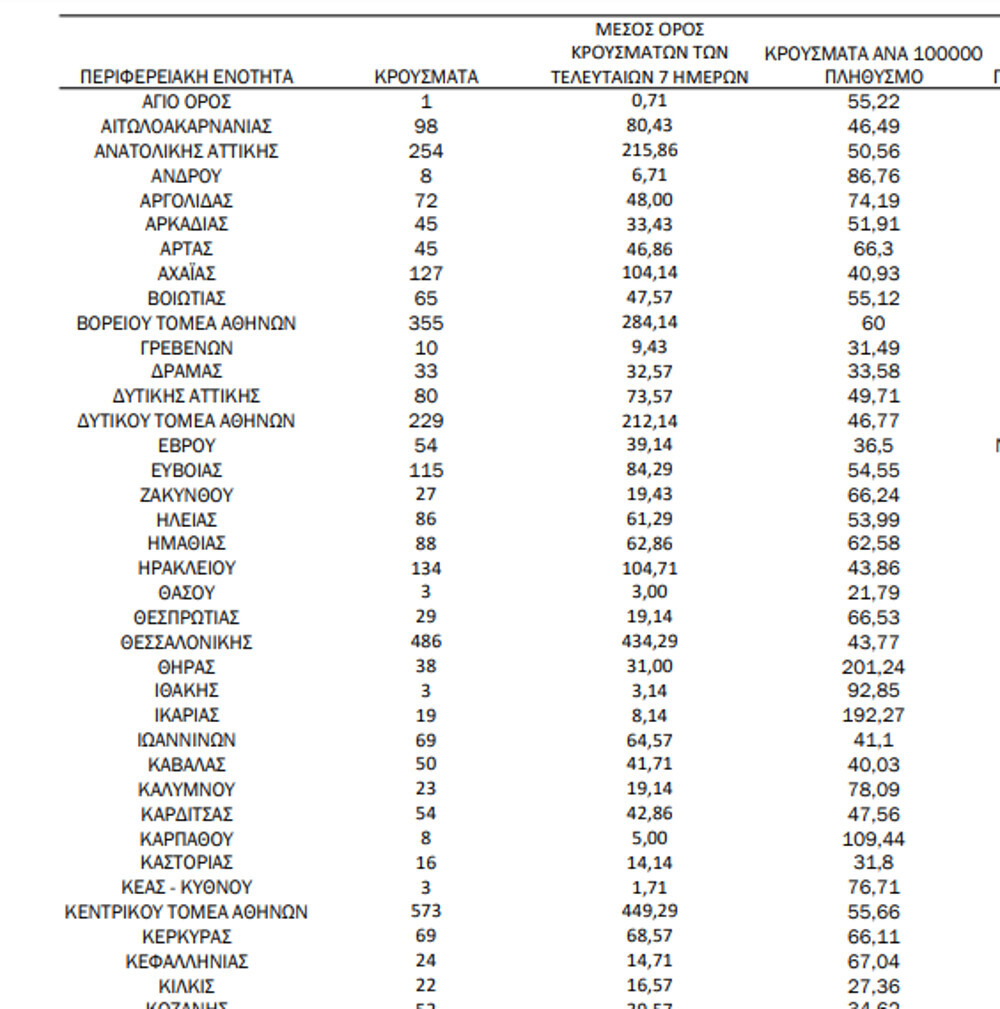 - Κεντρικός Τομέας Αθηνών: 573 κρούσματα