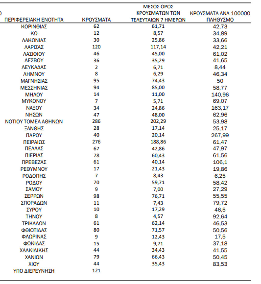 Αναλυτικότερα τα κρούσματα στις περιφερειακές ενότητες που ανήκουν στην Αττική: