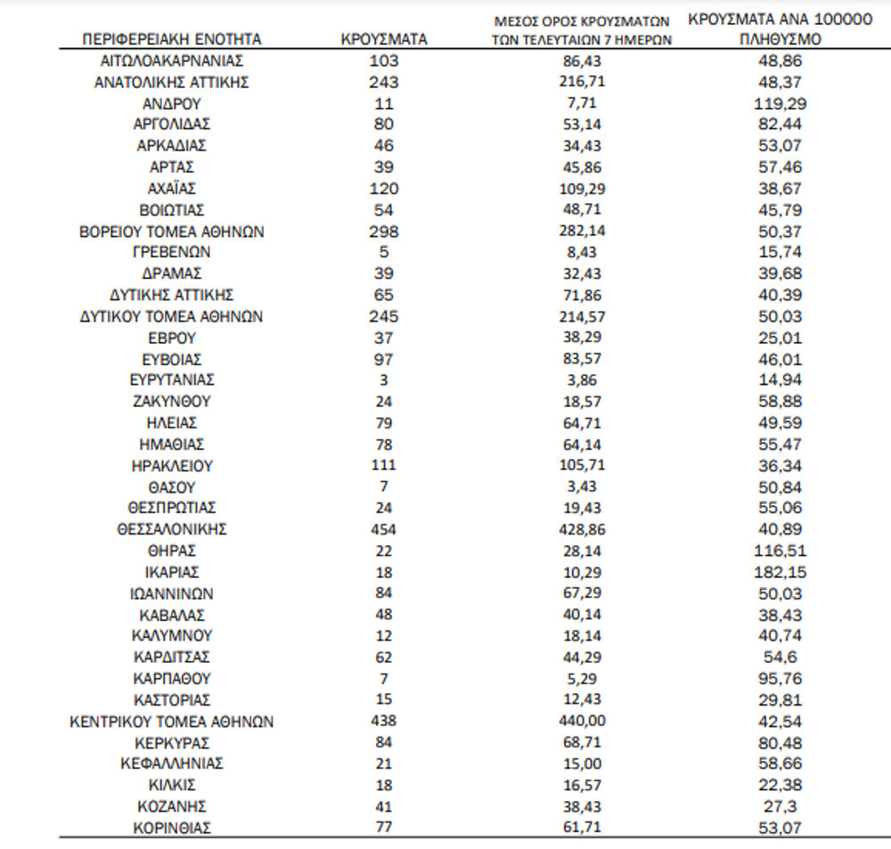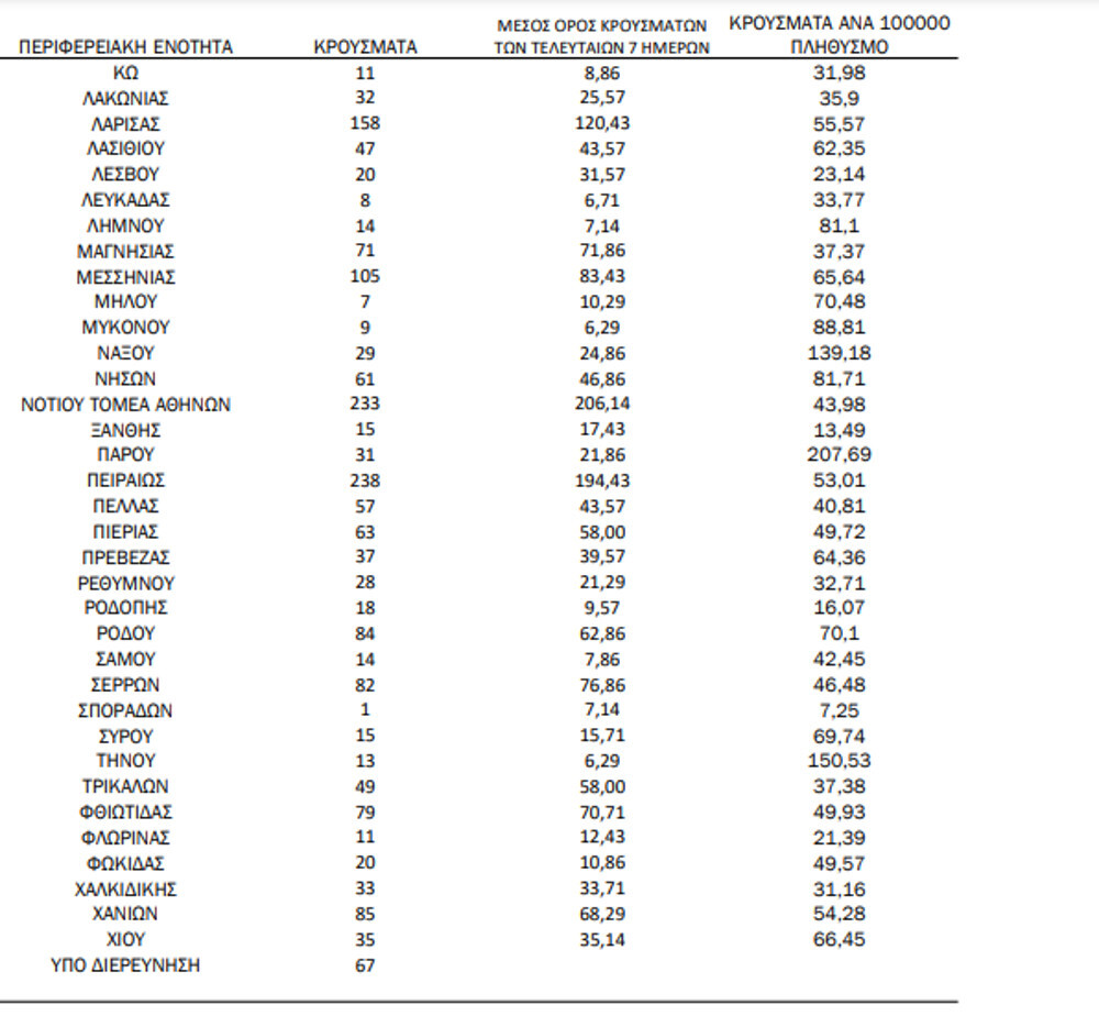 - Νήσων: 61 κρούσματα