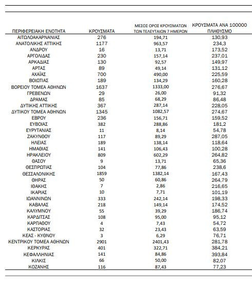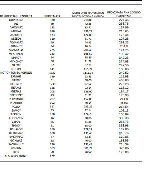 Αναλυτικότερα τα κρούσματα στις περιφερειακές ενότητες που ανήκουν στην Αττική: