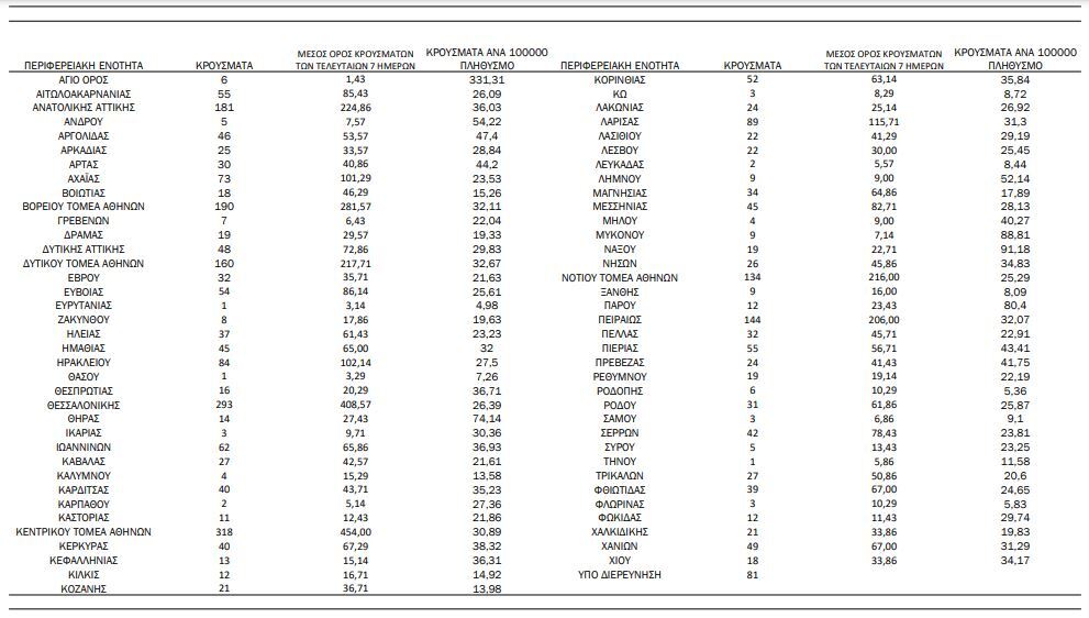 Αναλυτικότερα τα κρούσματα στις περιφερειακές ενότητες που ανήκουν στην Αττική: